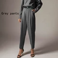 Best Women Pant Autumn/Winter Trousers Grey Shirt Solid Pantsuit Loose pant Enlarge High Waist Pants Wide-leg Pant Casual 2piece Suit and You will save 40% or US $19.98 today