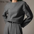 Discount Women Pant Autumn/Winter Trousers Grey Shirt Solid Pantsuit Loose pant Enlarge High Waist Pants Wide-leg Pant Casual 2piece Suit