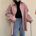Exclusive Outwear Oversized Corduroy Shirt Coat Women Tops Blouses Loose Casual Jackets Korean Elegant